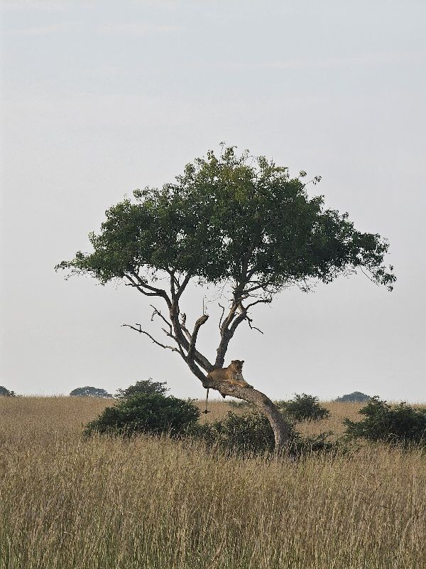 So, it wasn’t a trekking day, but it was a safari day! Have I mentioned how much I love safari? You just never know what you might see. Today was no exception. The game drive started out a bit slow, but then our guide stopped to chat with another safari driver for all the good safari gossip. Before we knew it, we were making a 17-point turn and heading back in the direction we came from. Herbert pulled on his seat belt and took off in hot pursuit of the other safari vehicle. We were speeding along–on the wrong side of the road, mind you–chasing after 2 safari vehicles. We were zooming past elephants, warthogs, and buffalo. Zoom, zoom, zooming. Finally, after about 20 minutes, I had to ask, Herbert, where are we going?! Oh, these guys heard about a lion in a tree. I should have known–only lions and leopard cause that kind of excitement.
