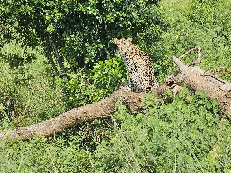 Then as we were about 10 minutes away from our lodge, there was a car stopped on the other side of the road. We were like, what are they looking at? I kid you not, there was a magnificent LEOPARD sitting on a dead tree trunk about 10 feet from the side of the road. And it just sat there forever! I have a million identical pictures, and they are all glorious! I’m not deleting a single one! After a few minutes, he jumped down into the grass to hide. We waited quite a while, staring intently into the grass but he never popped back up–not for lack of us desperately hoping to the contrary.