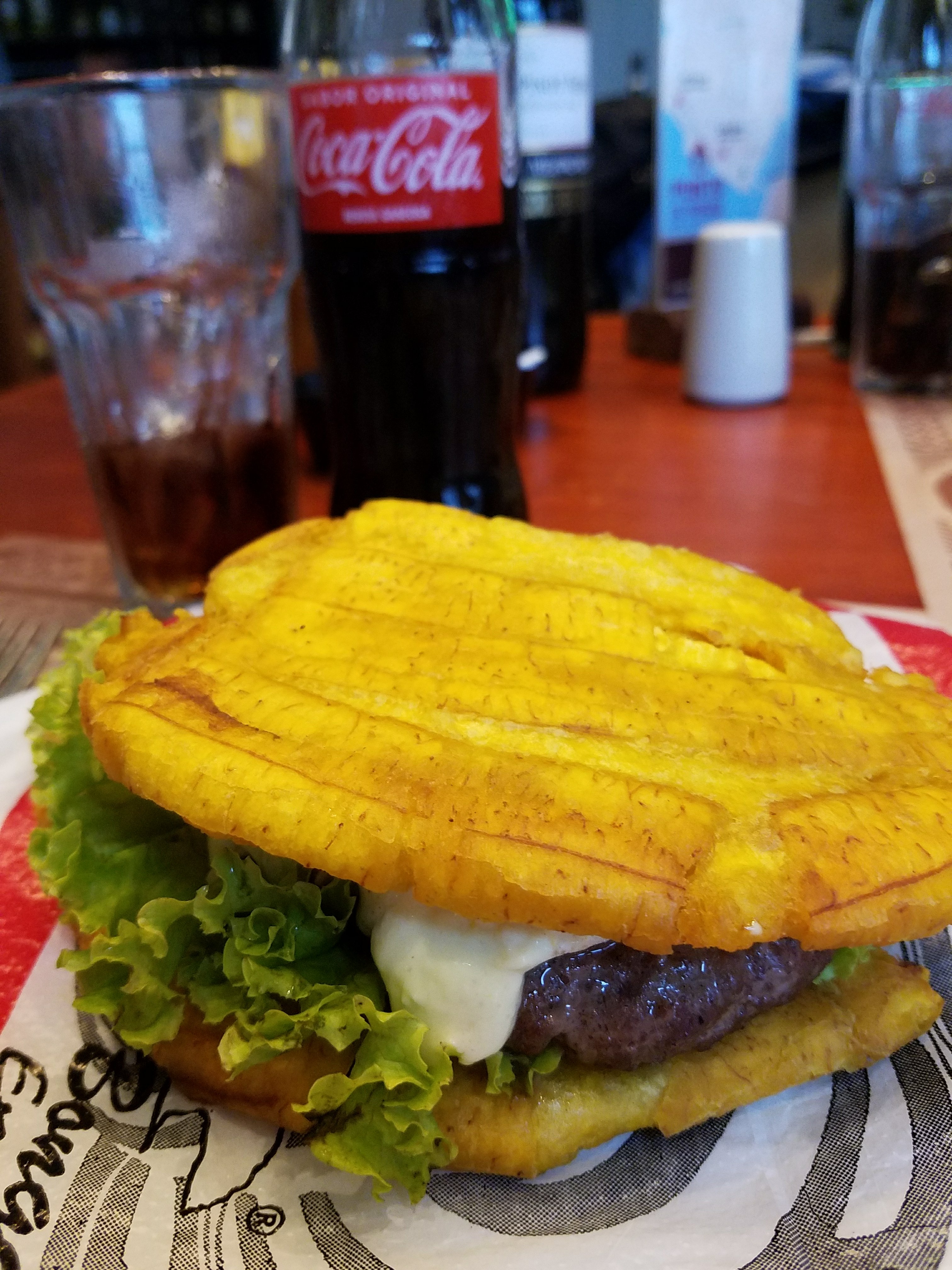 We had no plans for the rest of the day, so we asked the hotel guy where to go eat lunch and it was like he was a mind reader who could read the depths of our souls. He suggested Hamburguesa de Patacones– a hamburger that utilizes large, smooshed, and fried plantains instead of a bun? holy guacamole! That is what I am talking about! (I don’t even like guacamole, which is a pity because there are a plethora of avocados in this country– almost as many as there are hat vendors.) Needless to say, lunch was ah-maz-ing!