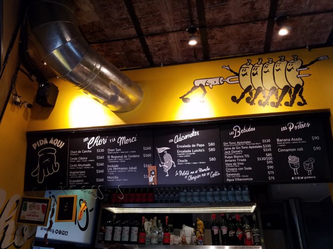 By the time we were done we were equally ravenous and exhausted. So, this part is for my mother’s benefit, you know how she worries that we don’t eat enough when we travel. Our guide had pointed out a place that has the best choripan in the city. (chorizo + pan = sausage and bread, so a sausage sandwich) I’m not a huge sausage fan, but I was hungry, it was close, it was fast, and it was highly recommended, so that’s what we ate. We got the guava choripan. It had guava sauce and plantain chips! When in doubt always go for the plantain chip option. Someone PLEASE open a restaurant or food truck that puts plantain chips or fried bananas on EVERYTHING! Thetwinsontour love plantain chips!