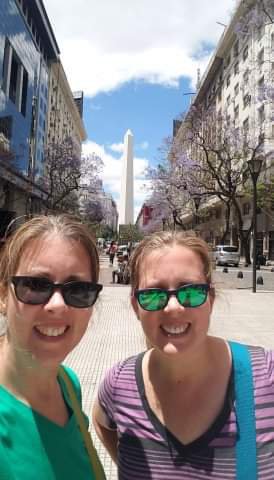We decided we were going to try an empanada place that had tons of empanadas in the window. We went in and decided to sit at a table in the back rather than stand in the front bar area. (This is common here just like some places in Spain) Anyways we sat down, opened the menu, and couldn’t find any empanadas. It was all pizza. Page after page of pizza. Pizza is very common and popular in Argentina because of the large number of Italian immigrants (I think about the same time that Italians were also immigrating to the US). We decided to go for a Fuggazza with ham and cheese. We asked what it was, and the waiter pointed it out on someone’s table and told us it was onions, ham, and cheese. Sounds interesting and delicious. thetwinsontour like to try new things that are interesting and delicious. They brought out our pizza, and it looked like a culinary delight. Then we each grabbed a slice, and there was cheese everywhere. Everything goes better with cheese, but this was like a lifetime supply of mozzarella– all shoved into one grande pizza. The first slice was yummy, but I didn’t even try to eat any of the oozey cheese that was dripping onto my plate. Then I went for a second piece. Still tasty. Then, there was half a pizza left– 4 slices of magical mozzarella. And I just couldn’t eat another bite. The waiter asked if we wanted to take the leftovers with us, and all I could do was stare at that half a pizza with my mouth hanging open. Did I want it? hmm, we did have a minifridge in the hotel. But, when was I supposed to eat leftovers in Argentina?? After several seconds of hesitation, I said yes. I do hate for things to go to waste. But, as I walked out of the pizzeria, with half a pizza in my hands, that had to have weighed 10 pounds, I knew I was never going to eat it. So, you know what I did?? The very first homeless person I saw got my leftovers. There was a mother with 2 little kids huddled on the sidewalk– I said Señora, bent down to her level and handed her my pizza. She looked at me and said gracias. So, leftovers solved.