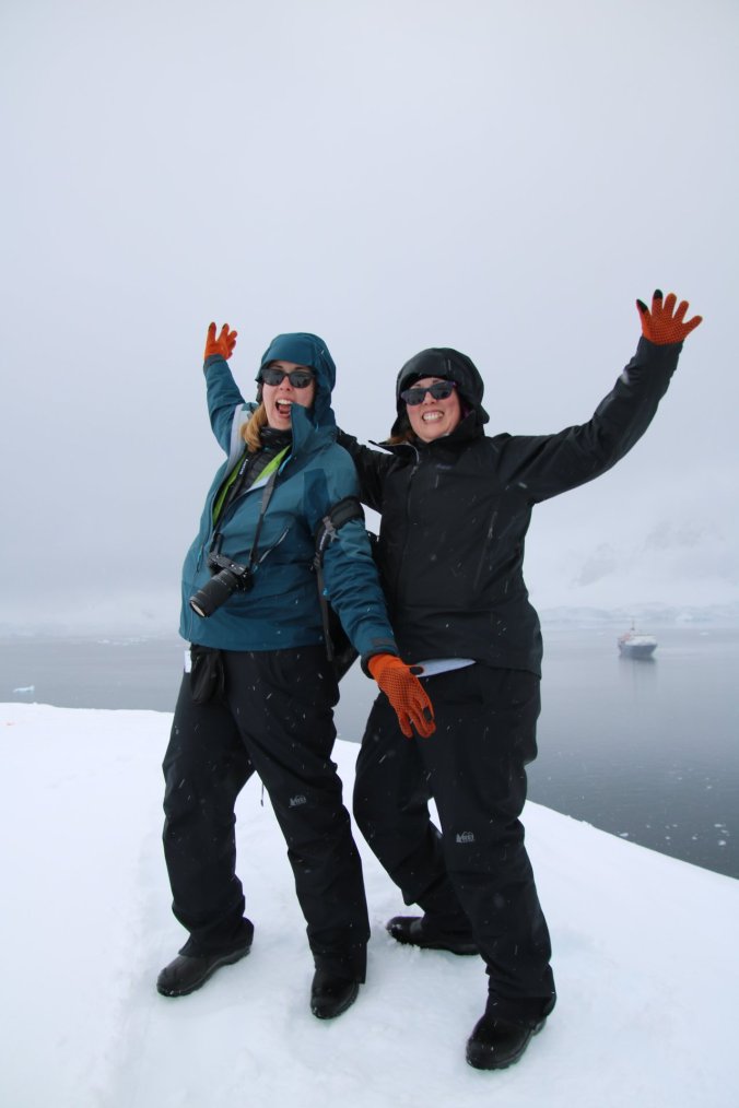 After two days of being stuck on the ship doing plan B and C (or was it plan D?) we awoke full of hope, but also trepidation because we were headed to Neko Harbor that we had already been blown out of previously. Nervously we listened to our morning wakeup announcement with bated breath, half afraid to listen. What is Katja going to say? Good Morning. Good Morning. The temperature is 4 degrees Celsius (great Antarctic temperature) and the wind speed is about 30 knots (not good). And all activities are proceeding as scheduled! HALLELUJAH! HALLELUJAH! HALLELUJAH! thetwinsontour are going to land again to be one with the penguins!