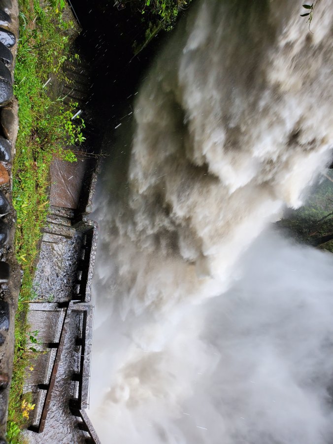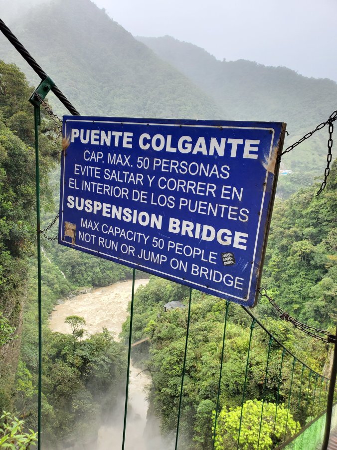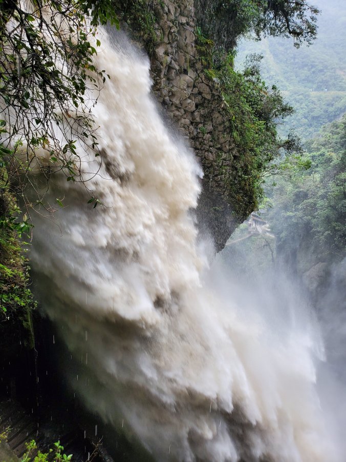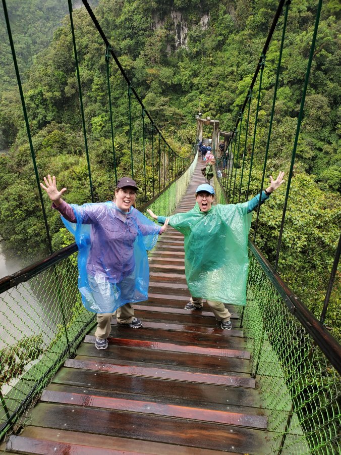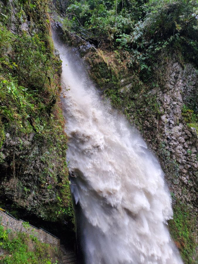 After a couple of hours driving, we arrived at our first stop of the day–el Pailón del Diablo, or the Devil’s Cauldron–a raging and tumultuous water fall on the Green River. The river must have been named when the water level was much lower during the dry season because this was a raging, muddy mess of brown water. There’s an awesome (and slippery) suspension bridge to cross so that you can get closer to the waterfall. I’m not sure if I got more wet from the rain or the intense spray of the waterfall.
