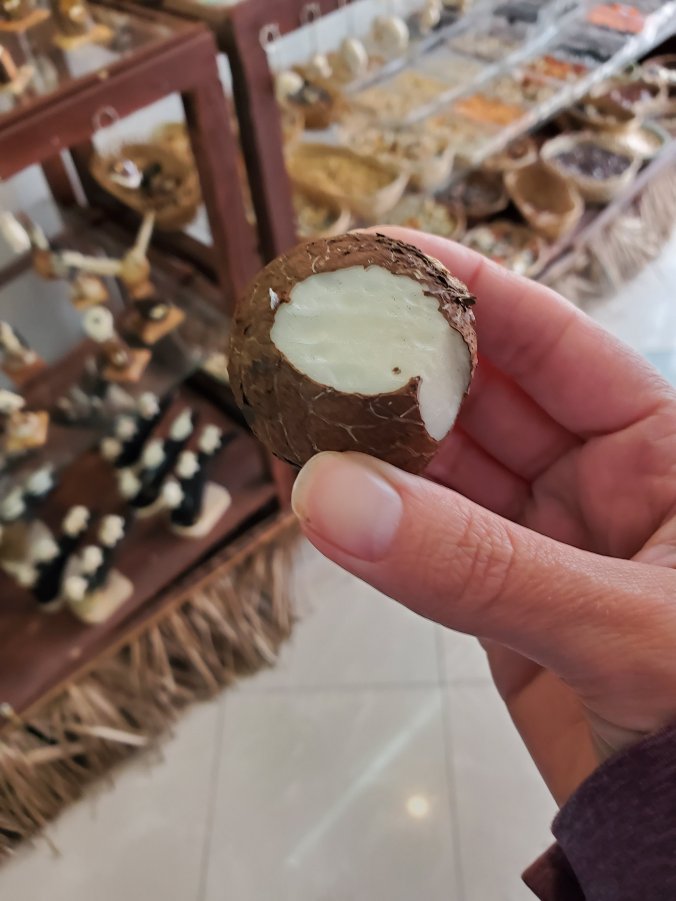 After that we were off to the town of Baños for lunch and a vegetable ivory demonstration. Vegetable ivory, or tagua, is a seed that comes from some kind of palm tree, and when its carved, it looks just like elephant ivory. I couldn’t get a good view of the carving demonstration because the group was in my way, so I shopped instead! (of course). I’m easily distracted by pretty things.