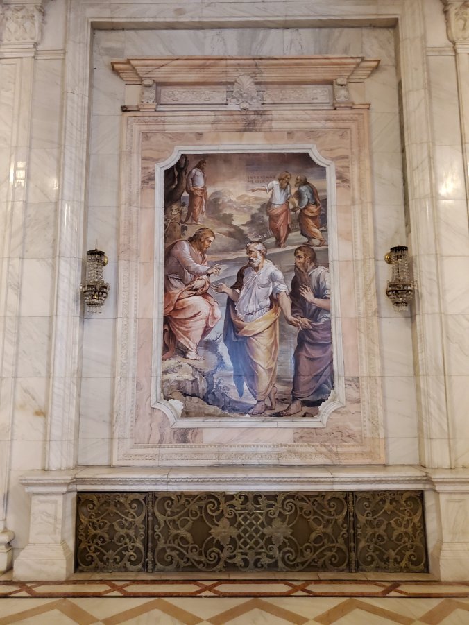 The paintings are made in wet plaster. So they would have smeared the plaster on the walls and then raced to get it painted. Can you imagine how difficult that would have been to paint it bit by bit without computers or projectures or whatever they would use nowadays to undertake such an endeavor?