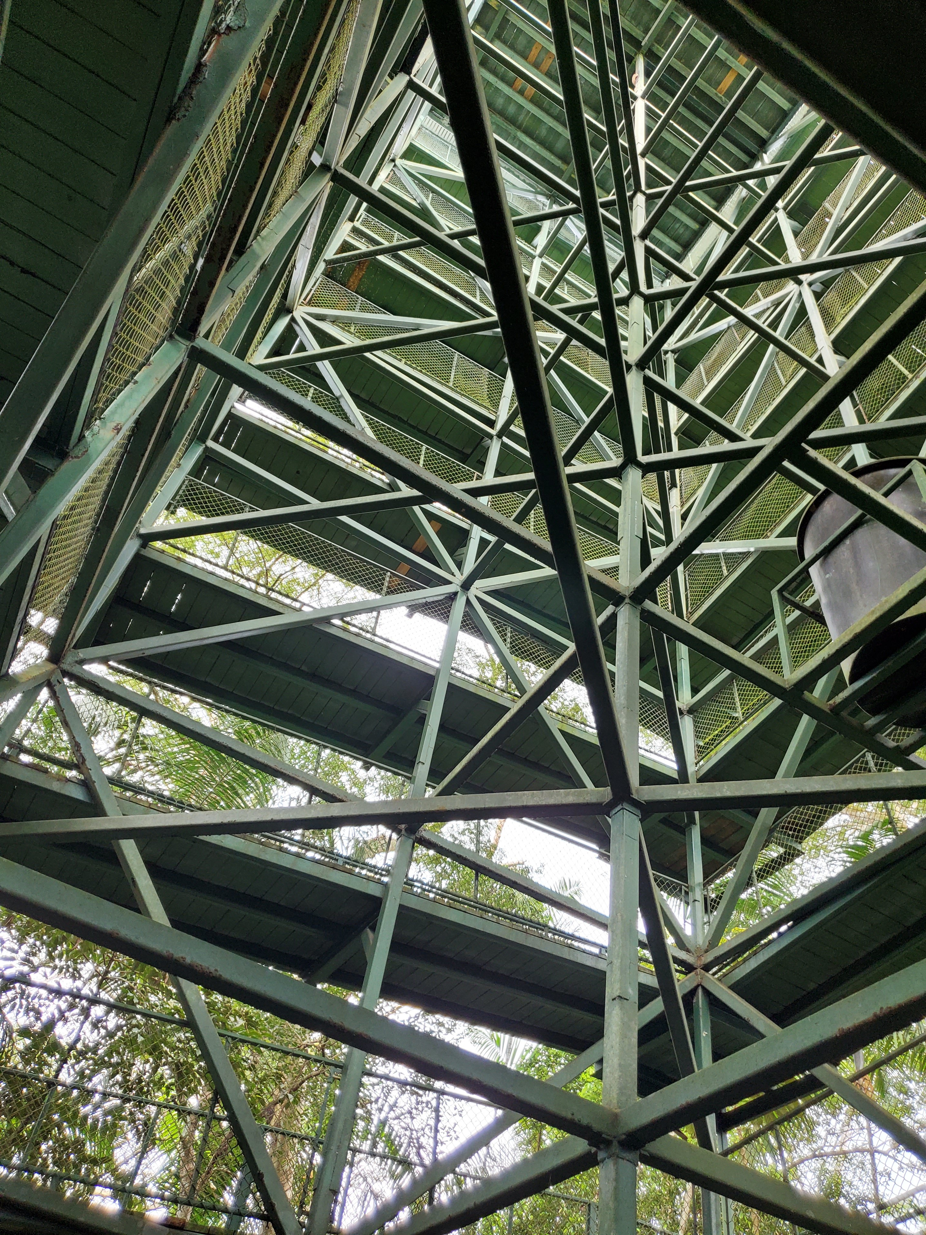 Did I mention we are in the rainforest? Do you know why they call it the rainforest? I think it has something to do with rain. Lots of rain. It was pouring rain during lunch, but it did stop for the afternoon so that we could take the aerial tram up the mountain and climb the 10 story observation tower (ramps, not stairs thank goodness!) to get a bird’s-eye view of the rainforest and Lake Gautan. They give you a little audio guide to listen to while you are riding the cable car up the mountain, and it talked about all of the animals that live in the rainforest and the sounds they make. Except when your sister’s audio device is about 4 seconds ahead of yours, you get really excited when you hear the cries of the howler monkey until you realize it’s just part of the dang audio program. So distressing! And even more distressing is that we didn’t see any of the wildlife it talked about. No rain-hating sloths, no howler monkeys, no cappucin monkeys, no tamarinds (Jefferson? tamarind), no swarms of parrots flying above the canopy, no poisonous frogs, nothing.