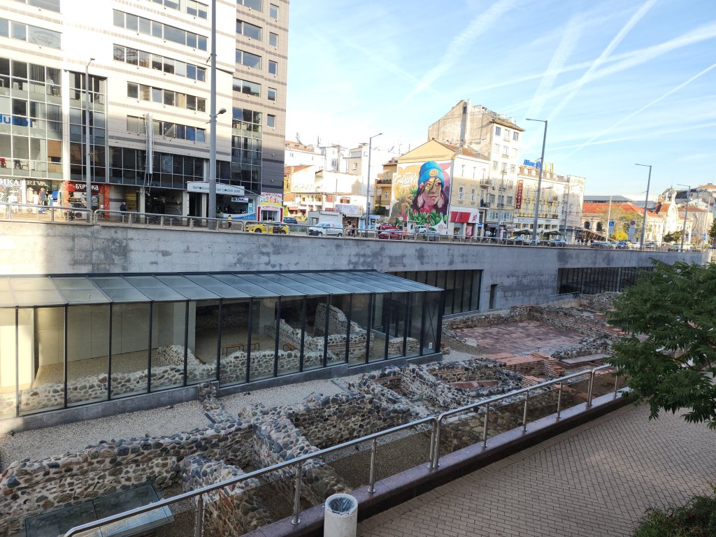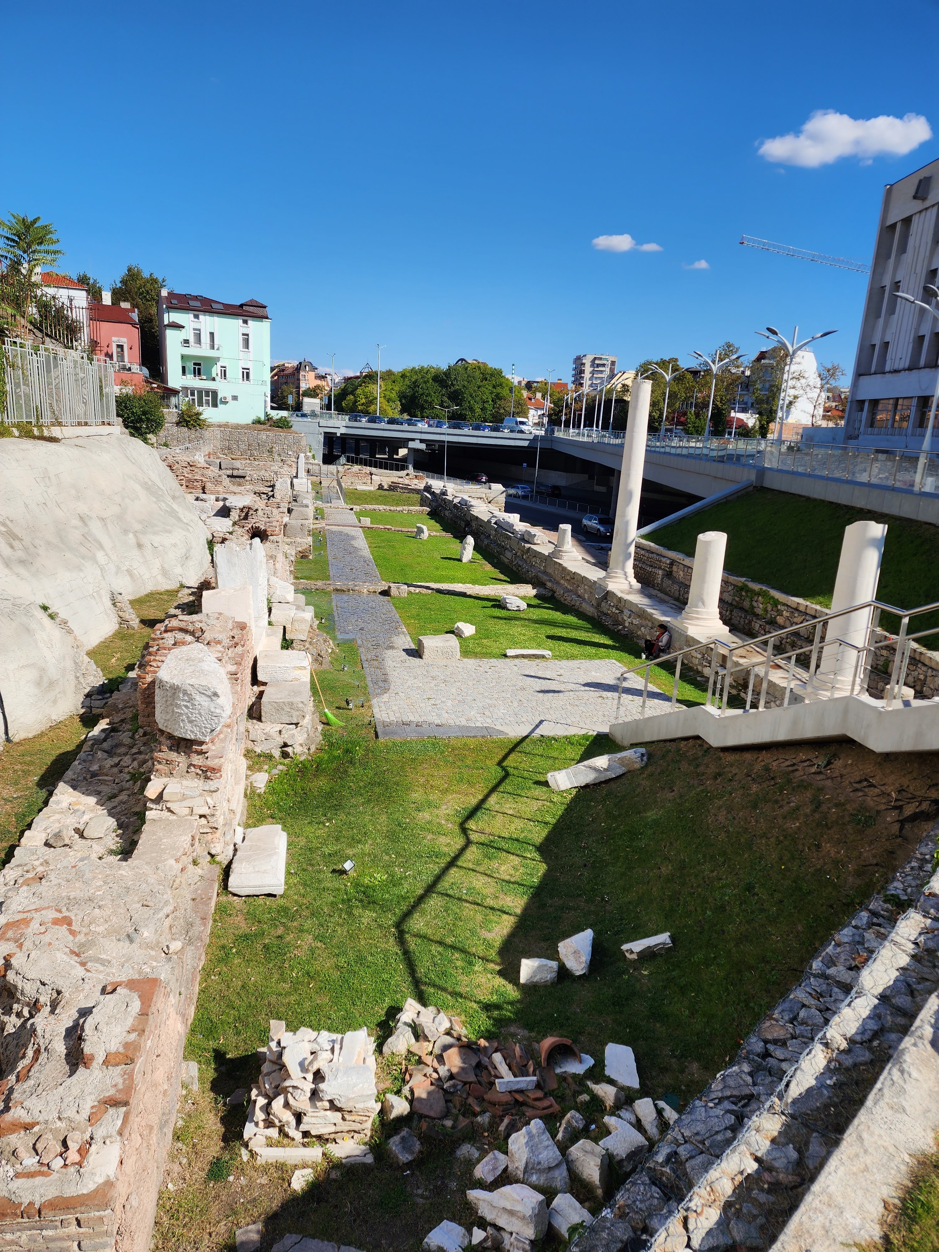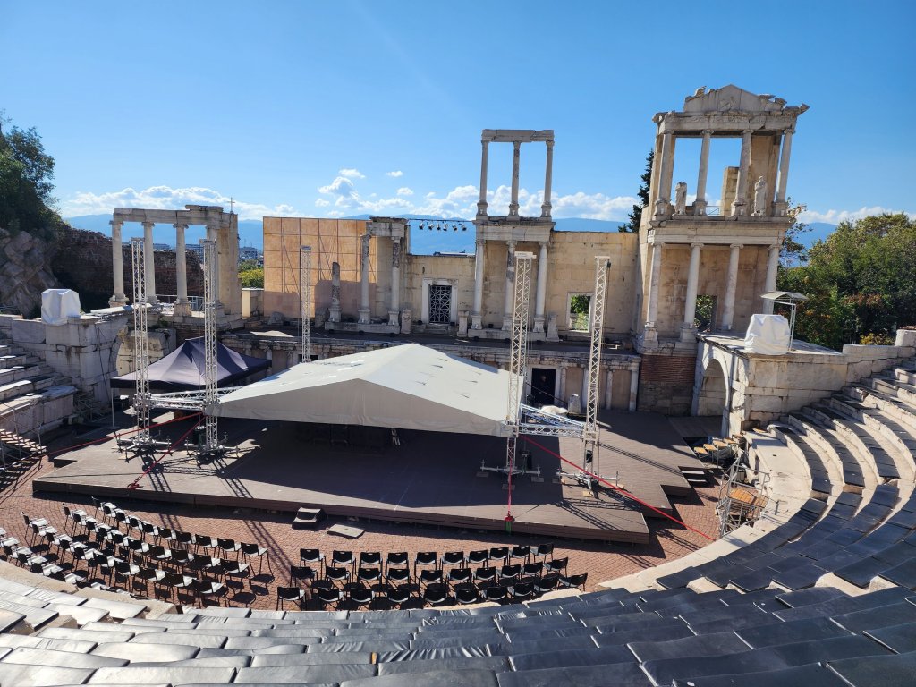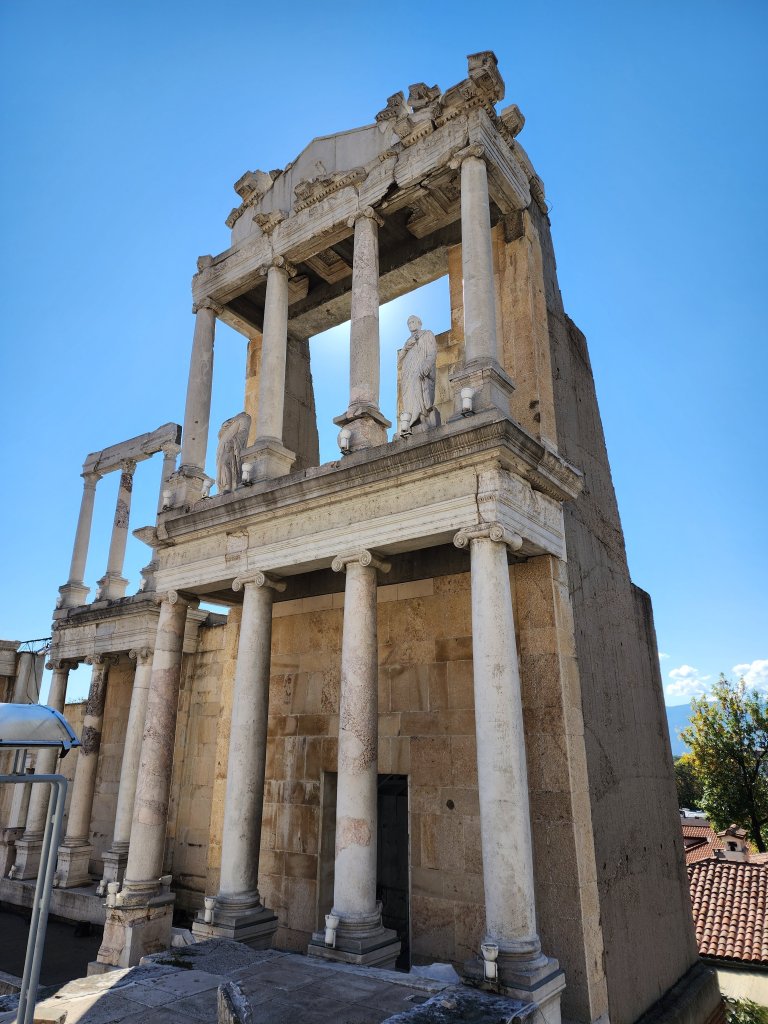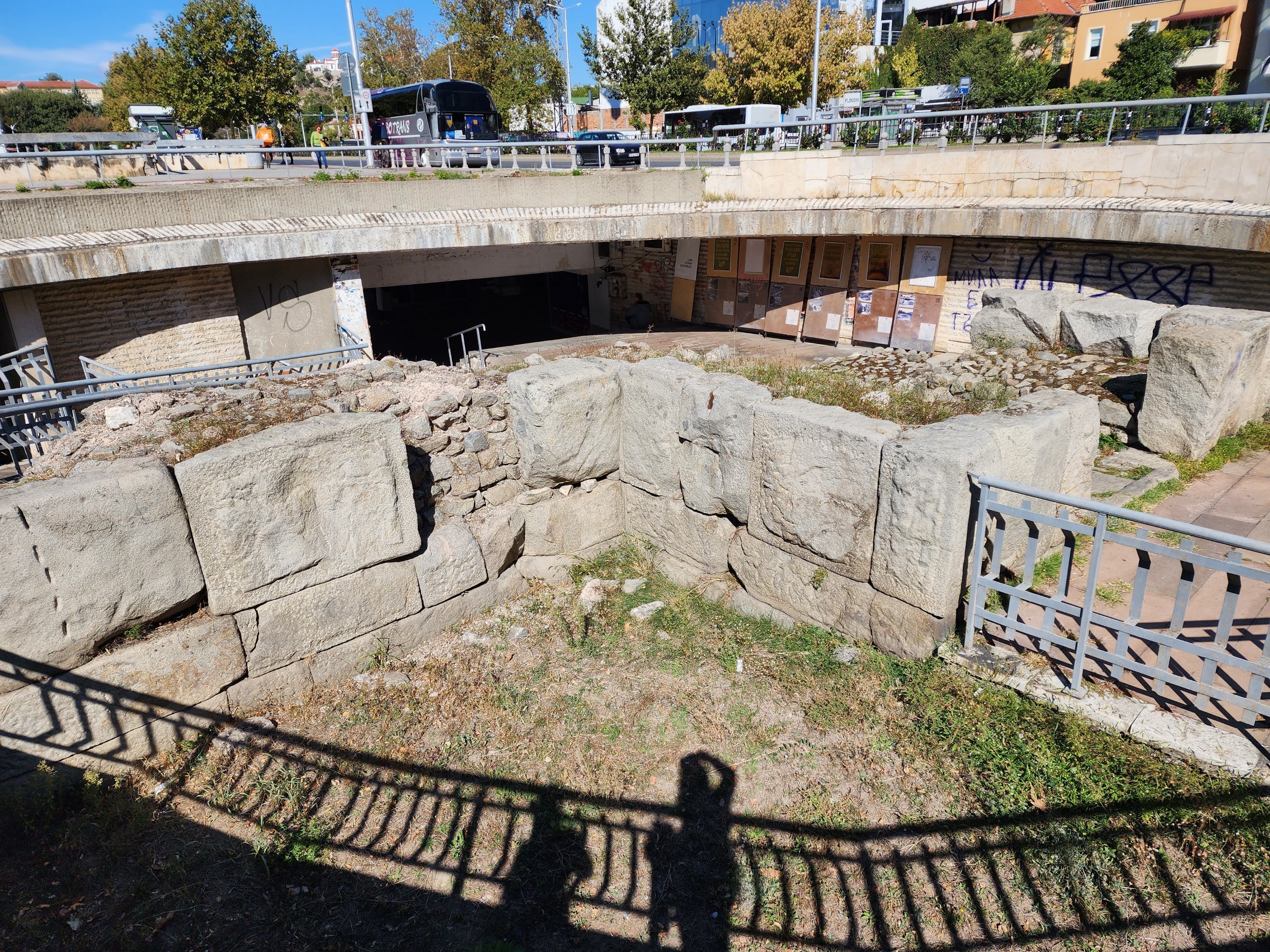 Today we were headed to Stobi to visit one of thetwinsontour’s favorite things–Roman ruins! There was an Amphitheater built in the 2nd or 3rd century AD. There is also what I think was the oldest Christian church built in Macedonia. Anyways according to the picture of the sign it was originally built in the 4th century, so it’s pretty ancient. There were these fantastic tile floors from like the 400s. It is still an active archeological site, but not in October–this summer they located a prison, which they were able to identify due to shackles and bones. We didn’t get to see the shackles, nor the bones as they had been shipped off to a museum or something. We had a fantastic local guide, who taught herself English as a child by watching Sponge Bob Square Pants and Nickelodeon. Her English was flawless with a perfect accent. And she was still in high school! thetwinsontour applaud education and the young, so we tipped her doubly. Our tour manager told us she was bloody fantastic. She kept everyone’s interest (even those of us busy taking selfies.)