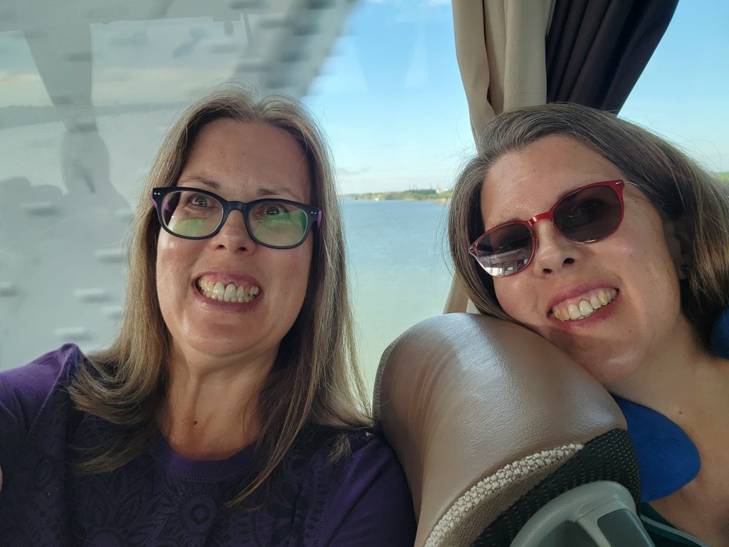 The next morning, we were supposed to visit a place called the Bay of Bones. It is a reconstructed Viking Village built on stakes on the shore of the lake. Luckily, it was closed so we didn’t get to go walk among those houses. It did not sound very exciting or appealing to thetwinsontour. We just stopped for a quick photo stop from above. They call it the Bay of Bones because the divers that discovered the remains on the lake bottom found a big ole pile of animal bones there in the water.