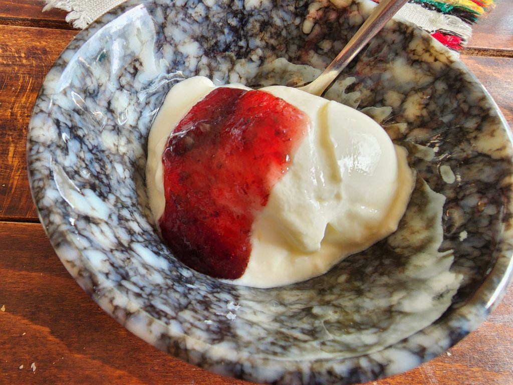 The real purpose of our winery visit was to sample the wines. With a decadent lunch. We started with a lovely white wine, made with Georgian grapes to go with our salad and ayvar. It is a R’Kaciteli, and only costs $4 a bottle! It was so delicious, and yes a bottle did make it into my suitcase. And no, this does not mean that we are sharing. Then we had a red wine to go with our steak (this one was $12 a bottle, but we didn’t have room to bring a bottle home even though it was delicious.) And refills. For dessert we had a nice Moscato with our cheesecake. This was a nice Moscato, but not as bubbly and sweet as the one momma likes in the blue bottle. So, if you were keeping track, that was 3 glasses of wine. For lunch. Plus refills. That is like a yearly consumption total for thetwinsontour. But, damn, it was good. (And dang, I just realized I put the pictures of the winery in yesterday’s blog. Oops. I guess, they will just have to be in both.)